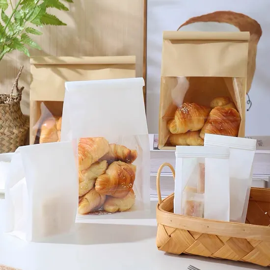 Wholesale Flat Bottom Paper Bread Bag with Tin Tie for Toast/Cookies/Bakery Storage