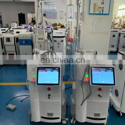 70W medical fractional co2 laser/co2 fractional laser/laser co2 fractional with CE Theory of RF co2 fractional laser CO2 Fractional laser is the most advanced conceptual fractional CO2 skin peeling laser system with a wavelength of 10600nm. In addition to its fine skin-peeling effect, it can effectively penetrate the laser beam into the dermis . It is the most beneficial skin recovery system and can achieve the long-term effect of collagen remodeling as well as improvement of aged skin conditions due to exposure to light. It can be very safely applied to various types of scars compared to the existing 100% total layer skin peeling lasers (CO2 or Er: YAG). In addition, it does not require a long period of recovery or side effects. It can remodel various types of deformed scars and skin tissue very effectively. Vaginal tightening capsule --Theory It concerntrated trearmal heating of the vaginal tissue inner layers induces collagen and elastine contraction and regeneration of these proteins in the longer term. These molecular signal activate the entire wound healling process of the body's local immune system. The treatment outcome is the complete remodeling of the vaginal tissue in addition to re-establishment of firm “young like" vaginal tissue embedded with string-like, thick and long collagen fibers. Advantage:1. 3 in 1 system, easy and convenient for operation.a. Fractional CO2 Laser for skin rejuvenation and scar removalb.and Normal CO2 laser for surgery operationc. Vagnal tightening for optional. 2.The screen can be folded up and down, rotate 180° left and right .3. Imported excellent 7 articular optical-arm, easy operated and greatly reduces the energy loss4. Imported USA Coherent RF tube emitter,a. even output energy, deeper penetration(8-10mm under the skin)b. long lifetime:3-5 yearsc. smaller sopt size:0.05mm at dia5. 6 scan modes: Sequence, Random, Maximum distance A&B, Equidistance and fast shot6. 7 scan shapes:square, rectangle, round, triangle, oval, 6-diamond shape and line. 7. 3 vaginal treatment probes for vaginal tightening, vaginal rejuvenation, vaginal whitening8.Ultra-quiet pump used, lower noise but larger water flow; 9.8.4 inch real LCD color touch screen, most humanized software control. Scan pattern size0.1mm*0.1mm-20mm*20mm Scan modeSequence scan or randon scanDots quantity400 dots at mostPulse duration0.1-10msSpot distance0.1-2mmPulse energy1mJ-100mJ is optional for each dotCooling systemWind and water circulationLaser apparatusSealed-off laser device stimulated by direct currentCondenser focusf=50mmBeam divergence angle0.3 mradSpot size≥ 0.2mm at the focusRadiation time/interval time0.011sAiming beam< 2mW, 635nm red semiconductor laserPower supplyAC110V/220V, 50Hz/60HzDimension123cm*45cm*75cmWeight50kg Applications:1. Smooth scars such as surgical scars, burnt scars, acne scars, etc2. Skin renewing and resurfacing, sun damage recovery3. Wrinkle removal and skin tightening4. Pigmentation removal such as intractable chloasmas, age spots, blemishes, speckle etc5. Skin excrescence such as wart,etc6. Acne treatment7. Vaginal treatment: vaginal tightening, vaginal whitening, vrine incontinence. Delivery:1. 3~5 working days after receiving the payment.2. Transportation Way: DHL, Fedex, UPS, EMS, by sea, by air,etc.We always choose the most economical and reliable shipping company to make sure you will receive the goods in time. Tracking number will be provided to you once the goods is shipped.
