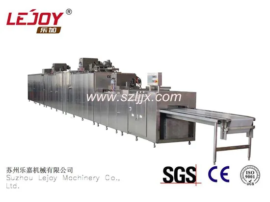 The machine is a special equipment for chocolate casting form. Besids pure chocolate, chocolate with filling, multi-colours and multi-tastes can be produced. The machine set of the second baking mold, pouring three times, three vibration, three cooling, transmission, automatic ejection in one multi-casting machine.