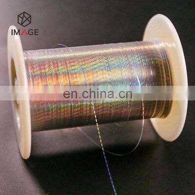 Products DescriptionProduct Name: 0.7mm Roll Form High Precision Holographic Security Thread for Knitting into Woven Garment LabelsBasic Parameter of Security ThreadMaterial30 micron PETColorTransparent, silver, hollowingThread width0.7mm, 0.8mmColorTransparent, silver, hollowingPatternEmbedded with your logoFeatureHigh temperature resistant Washable High tenacity Abrasion resistance SustainableApplicationApplicable to all kinds of clothing, shoes, and hats woven labelLength of roll2000m or customizeSample0.8mm*500m, available to testSecurity FeaturesProduct ApplicationsRelated ProductsAvailable CoresPacking & DeliveryCompany ProfileContact UsSuzhou Image Laser Technology Co., LtdADD: Building F, No. 28, Xingzhong Road, Wuzhong District, Suzhou City, Jiangsu Province, China