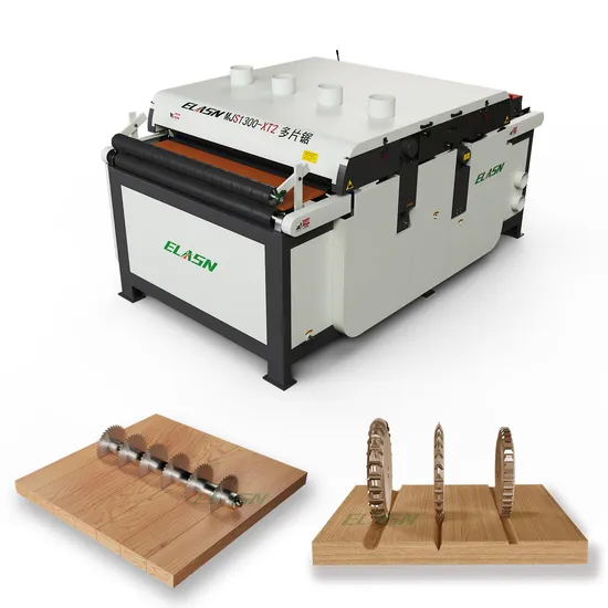 The tracked wood plate multi rip saw is mature product in our factory all the year round. It adopts track-type transmission feeding, with high performance and high precision.Solid wood composite flooring, laminate flooring, panel furniture, wooden packaging box, laminated timber, photo frame is sawn into multiple pieces of equal or different specifications in one time.