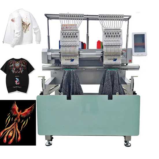 Product Description Yonthin 2 head ready cap and garment embroidery machine YXM series embroidery machine suits for all kinds of cap and garment. Like T-shirts, sweaters, uniforms, caps and so on. The machine is featured with high speed, compact structure and high quality of embroidery, easy operation, high productivity Specification