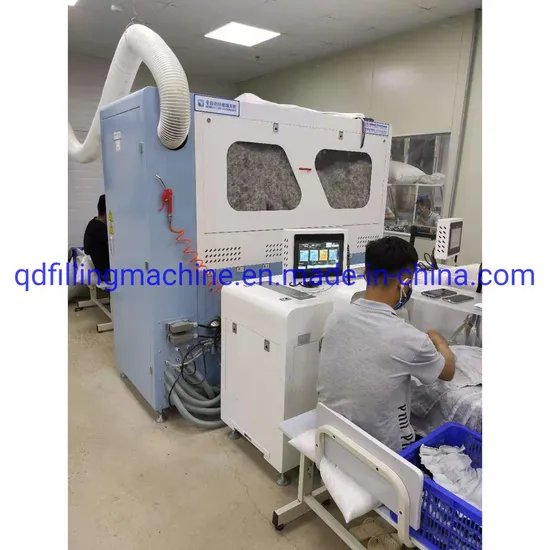 Using motor to import down and feather to storage box.Filling material:duck down, duck feather,goose down,goose feather,milkweed velvet,ball fiber,fake down and etc.