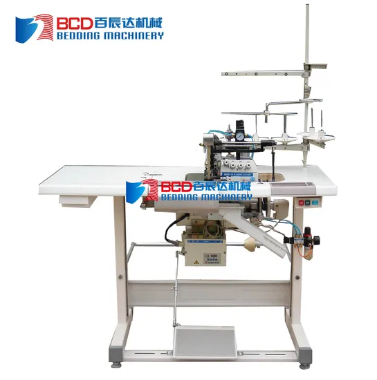This machine is used for both overlocking and doing flanging on the mattress panel border. Its feature as: Taiwan KINGTEX modified ,HoHsing motor , strong-suction waste collection device, synchronization belt feeder, 5thread ,with non-woven fabric stand and system .