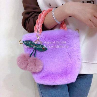 009Autumn women's bag Imitation fur bucket bag Pink single shoulder diagonal bag Metal chain fashion bag
