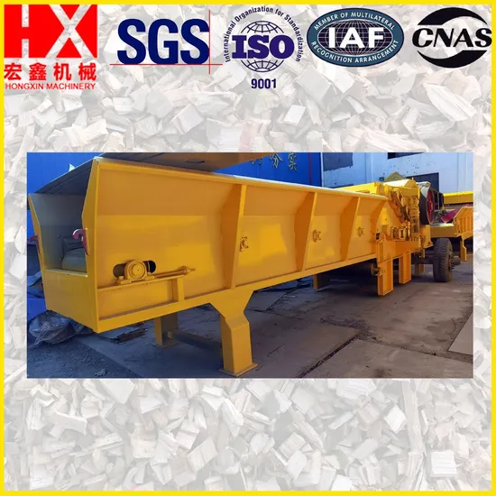 Wood chipper is composed of engine base, knife roller, upper and below feeding mechanism, feeding conveying device, discharging conveying device, hydraulic buffer system and electrical control system. Detailed Photos