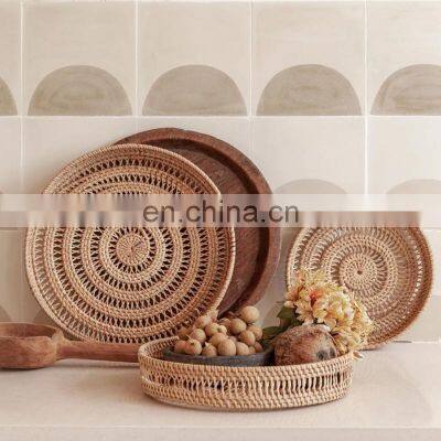 Product DescriptionBeautiful Handwoven Rattan Round Decor Tray, Handcrafted Wicker Serving Tray Basket Vietnam SupplierThe rattan tray, which is suitable for decorative purposes, is suitable for use as a tea tray, a serving tray such as a coffee tray, a presentation tray such as a ring tray, and a decorative candle tray.This beautiful tray is great for serving breakfast, dinner, fruit, or other small meals. It has a simple design that should go well with most home decoration styles and is made from eco friendly material. Hand-woven by local craftsmen, suitable for use in all living spaces, is durable and environmentally friendly. – It completes the elegance in presentations and is used to carry our treats.Plant Fiber TypeRattanTypeStorage TraysApplicable SpaceBathroom, Living Room, KitchenProductFood containerShapeRoundNo. of TiersSingleCommercial BuyerRestaurants, Food & Beverage Stores, Super Markets, Hotels, Gifts StoresFunctional designMultifunctionRelated ProductRecommended By SellerMain MaterialMain MarketsPacking & DeliveryOur Selling PointsCompany Profile
