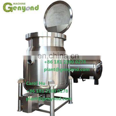 Genyond GroupShanghai Geyond small vaccum frying machine for fruit banana chips Vacuum fryer - Nutrition, convenience, safety, green is the current trend of food production. Fruit and vegetable crisps with unique flavor and pure nature are welcomed by people in developed countries and regions such as the United States, Australia, Japan, Hong Kong and Taiwan. In China, with the continuous improvement of people's living standards, people are increasingly pursuing natural flavor food. In developed cities such as Beijing, Shanghai and Qingdao, consumers have been pursuing it enthusiastically. The market demand has increased sharply, and the supply of products is in short supply. Principle:Fruit and vegetable crisp chips are made of fresh fruits and vegetables as the main raw materials, edible vegetable oil as the thermal medium, vacuum low temperature frying and other advanced technologies, which can quickly dehydrate and dry in a very short time, obtain fruits and vegetables with low moisture content, low oil content, crisp but not greasy, preserve the original shape, color, aroma and taste of fruits and vegetables, and rich in vitamins, minerals, fibers and so on. Various nutritional components, with low sugar, low salt, low fat, low heat and other characteristics. Application:FruitsApple, banana, kiwifruit, pineapple, winter jujube, strawberry, pineapple honey, persimmon, grape, peach, pear, etc.VegetablesCarrots, radishes, sweet potatoes, pumpkins, garlic, onions, mushrooms, winter melon, okra, tomatoes, potatoes, green peppers, etc.Dry FruitsDate, peanut, etc.CarnivorousBeef, fish fillets, shrimp, octopus, etc. Parameters:Raw material input10-500KG/batchVacuum degree0.092-0.1MpaTime30-60minTemperature70-120 CentigradePower5.5-22kwHeating modeElectric/Heat conducting oil/Gas/CoilShanghai Genyond small vaccum frying machine for fruit banana chips Comparing vacuum fried fruit and vegetable crisps with traditional fried fruit and vegetable crisps: Vacuum Fried Fruit and Vegetable CrispsTraditional Fried Fruit and Vegetable CrispsEdible oilMustard oil, rich in 60% unsaturated fatty acids, oil content of 5% - 12%.The content of saturated fatty acid in palm oil is more than 60%, and the oil content is 25% - 35%.Machining processVacuum technology, oil temperature above 80 Centigrade, better retain nutrients.Traditional high-temperature frying technology, oil temperature above 120 Centigrade.TextureCrisp and delicious, unique flavor, retain the original taste of the product.Oily, poor taste, easy to fire.DehydrationVacuum pumping, water content less than 5%.Traditional pumping, high water content.AdditivesDo not add any preservatives, do not lose its own taste and flavor.In order to make the mouthfeel more delicious, artificial flavoring is often added with flavors, flavouring powder and so on.Nutritive valueIt is rich in plant fibers, minerals, carbohydrates and plant proteins to supplement human needs.High calorie, high temperature is easy to produce carcinogens, endangering human health.Color and shapeKeep the original color and shape.The color and shape were destroyed.Quality guarantee period12 months.It needs to be eaten as soon as possible because it is easy to regain moisture. Packaging & ShippingCompany InformationCertificateFAQ Are you a factory or a trader?We are factories, specializing in the design and manufacture of fruits and vegetables, beverages, dairy machinery, essential oil refining equipment, filling and packaging equipment. About price?The price is negotiable. It can be changed according to your quantity or package. When you are making an inquiry, please let us know the quantity you want. MOQ?The minimum order quantity is 1, please contact us for the specific products! Warranty?We are very confident in our products,and we pack them very well,so usually you will receive your order in good condition.The warranty period is 12 months. Payment?T/T, L/C, or Western Union Quality and service?The quality of our products is very good with high sales volume, and our service is also satisfied with you. Welcome to China to visit our factory at any time!Our Services Shanghai Geyond small vaccum frying machine for fruit banana chips