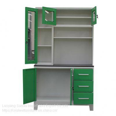 The lower left door is swing door with one shelf,the right is with 3 drawers. K/D structure,flat package.