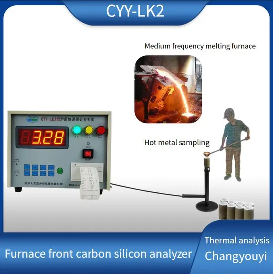 The CYY-LK2 Carbon Silicon Analyzer is based on the CYY-TL1 Carbon Silicon Analyzer. It has been upgraded with system enhancements so that it can not only analyze data such as carbon and silicon content, but also estimate the hardness and tensile strength of the material. The instrument is also equipped with a printing function to facilitate data record keeping. The instrument adopts portable design, which enhances the anti electromagnetic interference performance and dust-proof performance. It is simple and convenient to operate. A small ladle of molten iron can be poured into the pouring cup by the furnace worker, and a series of data such as carbon and silicon content of molten iron can be measured.