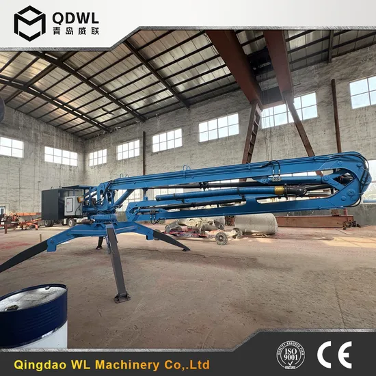 1. It has three arms design, "R" folding. The machine is driven by hydraulic and slewing flexibly, with wide working range. Arms adopt high strength steel plate which is stronger and lighter.2. Two modes of operation: wireless remote control and cable remote control, easy to operate.3. Inner-climbing frames: floor frames or wall (lift or shaft) frames, which are suitable for different jobsites.4. The main electronic components of this Concrete Placing Boom are products of the world-famous brand, with high-quality.
