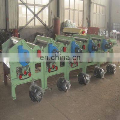 Textile tearing machine The machine can crush fiberglass, glass cloth. Fibro felt, cotton cloth, old clothes, newspaper, flax etc into cotton shape, it is also with functions of dust collecting Name Model Dimension Motor Roller’s length Roller's diameter Weight Capacity Double roller crusher JX-250B2900*1700*130029KW1000MM250MM1500KG150-250Three roller crusher JX-250C4000*1700*130034KW1000KW250MM2350KG150-250Four roller crusher JX-250D5100*1700*130040KW1000KW250MM3200KG150-250Five roller crusher JX-250E6200*1700*130045.5KW1000KW250MM4050KG150-250