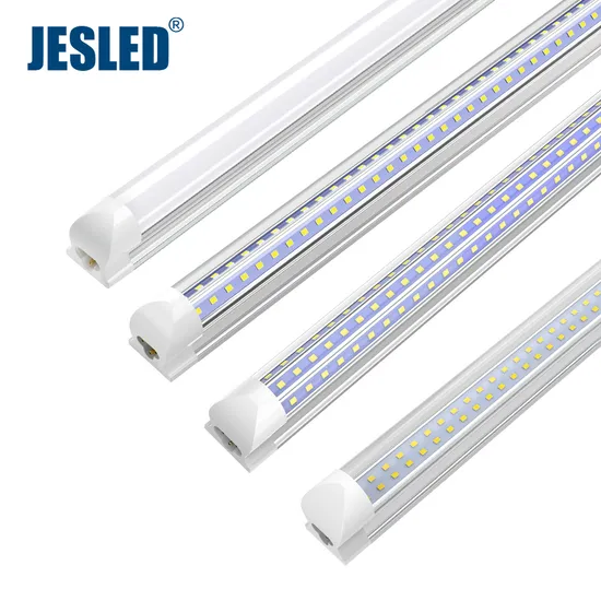 JESLED T8 Integrated LED Tube Light Fixture, 2ft/3ft/4ft/5ft/6ft/8ft LED Cooler Light, 18W-72W, 270 degree V Shape LED Commercial Lighting