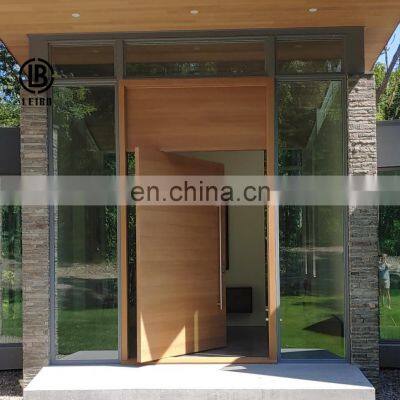 Product SpecificationProduct nameAluminum Pivot DoorProfile1.High quality aluminum alloy profiles, thickness 1.2-2.0mm2.Excellent quality thermal break aluminum profiles, thickness 1.4-2.0 mmGlass type1.Single toughened glazing:6mm/8mm/10mm/12mm...2.Double toughened glazing:5+12A+5mm/6+12A+6mm..3.Laminated glazing:5+0.38PVB+5mm/6+0.76PVB+6mm...4.Low-E glazing:Green/Bule/Brown/Golden...5.Other glazing:frosted glass/crystal glass/art glass...Mesh1.Aluminum security mesh2.Stainless steel security mesh3.Solid iron security mesh4.Mosquito net(Nylon,Stainless steel,Diamond)Hardware1.Germany brand2.Australian brand3.Chinese top brandSurfacetreatment1.Anodizing2.Powder coating3.Electrophoresis4.Fluorocarbon paint Company InformationAbout UsFoshan Leibo in 1998 and developed trade business in 2005, Foshan Leibo Cunstrction Material Factory has experience inmanufacturer and exporter more than 12 years. We are specialized in the development and production of aluminium doors&windows,aluminum balcony&handrails, steel door , stainless steel door , iron sheet etc.All of our products comply with internationalquality standards and are greatly appreciated in different markets throughout the world.Our CustomerProject CooperationPackingFAQ1.How can I get the price? "-We usually quote within 24 hours after we get your inquiry(Except weekend and holidays). -If you arevery urgent to get the price, please email us or contact us in other ways so that we can offer you a quote." 2. Can I buy samplesplacing orders? -Yes.Please feel free to contact us. 3.What is your lead time? "-It depends on the order quantity and the seasonyou place the order. -Usually we can ship within 7-15 days for small quantity, and about 30 days for large quantity." 4.What isyour payment term? T/T in advance for sample, TT 40% in advance, balance before shipment for bulk order 5.What is the shippingmethod? "-It could be shipped by sea,by air or by express(EMS,UPS,DHL,TNT,FEDEX and ect). Please confirm with us before placingorders." 6.How do you make our business long-term and good relationship? "-1. We keep good quality and competitive price to ensureour customers benefit ; -2. We respect every customer as our friend and we sincerely do business and make friends with them,nomatter where they come from."