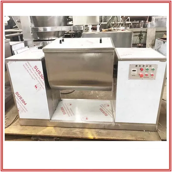 Groove mixer for mixing powder or paste material, so that the different quality of material mixed. Is a horizontal trough single paddle mixing, stirring paddle was shaking through the shaft, easy to clean. Contact with the object of the whole made of stainless steel, it has good corrosion resistance, mixing tank can automatically flip down to discharge the material.