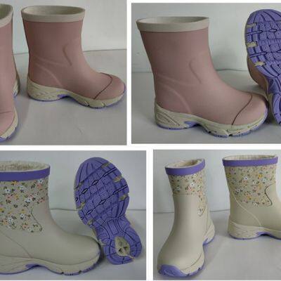 Rubber boots for kids: Generally the sizes are 22-35 (the USA sizes are 5-14 and 1-4), the weight of the boots is about 0.4KGS to 0.6KGS/pair. The colors on the surface and the logo can be manufactured according to your requirements. Package: one pair of boots in one polybag; 10 to 20 pairs of boots in one outside carton. Of course, we also can package them according to your requirements. The price is confirmed according to your actual products and manufacturing requirements. Our MOQ is 1000 pairs each style (they must be same styles, but can be different sizes).