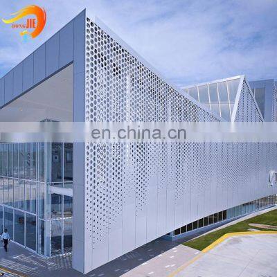 Wall decorative perforated aluminum sheet metal wall facadesFacade claddingThere are many advantages to using perforated metal mesh as curtain wall mesh1. The selection of a variety of plates and holes can effectively set off the overall beauty of the punching network.2. The construction is simple, the design of perforated metal mesh has scientific planning and design, the construction is simple and fast and the effect is beautiful.3. The structure is more portable, the preset is more flexible, the safety performance is higher, and the later protection is simpler.Product DescriptionProduct NameWall decorative perforated aluminum sheet metal wall facadesMaterialAluminum, stainless sheet, black steel, galvanized steel, copper/brass, etc.Hole ShapeRound, Square, Hexagonal, Cross, Triangular, Oblong, etc.Arrangement of HolesStraight; Side Stagger; End StaggerThickness≤ Hole Diameters (to make sure perfect holes)PitchCustomized by buyerSurface TreatmentPowder coating, PVDF Coating, Galvanization, Anodizing, etc.Applications- Facade cladding- Curtain Wall- Architectural decoration- Ceiling- Noise Barriers- Wind dust Fence- Walkways and staircases- Conveyor Belt- Chair/Desk- Filter Screens- Window- Ramps- Gantries- Filtration- Balustrades- Protecting net for carPacking Methods- Packing in rolls with cartons. - Packing in pieces with wooden/steel pallet.Quality ControlISO Certificate; SGS CertificateAfter-sale ServiceProduct test report, online follow-up.Note: These are only some parts of our products, not all. If you want other specifications, please feel free to contact me. Our factory can customize the specification as your requirements.You May LikeProducts Pictures ShowPerforated metal mesh has a wide range of uses, not only can be used for highway, railway, subway and other transportation municipal facilities in the environmental noise control barrier; Can also be used for building ceiling, stairs, balconies, environmentally friendly tables andchairs of the exquisite decorative hole plate; It can also be used for protective cover of mechanical equipment, gorgeous sound box net cover, stainless steel fruit blue kitchen utensils, food cover and so on, as well as the shelves of shopping malls, decorative display tables, etc.Why Choose UsEnterprise introductionAnping Dongjie Wire Mesh Products Co.,Ltd., located in Anping, China is a specialized manufacturer for the development, design and production of expanded metal mesh, perforated metal mesh, decorative wire mesh and stamping parts for decades. As always stuck into "Quality Proves Strength, Details Reach to Success", Dongjie achieves highly acclaim in the old and new customers.Fully equippedOver the past 20 years, the company has continuously expanded its market and updated its equipment. The company not only has large aluminum mesh production equipment, there are small hole tensile plate mesh machines, as well as small and medium-sized plate mesh machines. At the same time, the company has a large punch, roll welding machine, bending equipment and just mass production of large gantry punching equipment.Raw material quality assuranceDongjie has adopted ISO9001:2008 Quality System Certificate, SGS Quality System Certificate and modern management system. The company adheres to factory control standards superior to domestic and international standards to meet customers' expectations and requirements for product quality.ExhibitionOur products are sold to more than 200 countries and regions all over the world, covering five continents. At the same time, our company has participated in many exhibitions and reached cooperation with domestic and foreign customers.FeedbackWith the tenet of "win customers by quality, develop market by reputation", the company has been well received by the industry and customers at home and abroad.Productive ProcessService principleUnderstanding the needs of customers, controlling the quality process strictly, tracking the quality timely, dealing with the quality objections quickly.CertificationsPacking & DeliveryBubble filmReduce the friction between the products and the wooden cases during the transportation process, and prevent the possible damage and color loss caused by friction.Wooden caseA special wooden case for export products to prevent products from being damaged by extrusion, falling and loss during transportation.Anti-fouling filmPrevent dust from entering the wooden case and ensure the cleanliness of the wooden case; Waterproof, to ensure that the wooden case will not water, prevent the damage of the goods.Packing processDelivery methodQuantity(sqm)Delivery TimeShipping WayShipping Time1-2993-5 days after received your paymentDoor to door by express5-10 days300-4993-5 days after received your paymentDoor to door by express5-10 days500-100010-15 days after received your paymentShipping by airShipping by sea20-30 daysFAQQ1:How to make an inquiry about Perforated Metal Mesh? A1:You need to provide material, hole size, thickness, sheet size and the quantity to ask for an offer. You can also indicate if you have any special requirements. Q2:Could you provide a free sample? A2:Yes, we can provide a free sample in half A4 size together with our catalogue. But the courier charge will be on your side. We'll send back the courier charge if you make an order. Q3:How is your Payment Term? A3:Generally, our payment term is T/T 30% in advance and the balance 70% before shipping. Other payment terms we can also discuss. Q4:How is your delivery time? A4:The delivery time is usually determined by the technology and quantity of the product. If it’s urgent for you, we also could communicate with the production department about the delivery time.