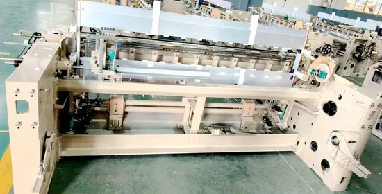 JWYC898 series heavy duty water jet loom is specially designed for weaving high density and high grammage fabrics, featuring with high speed, high efficiency and stable operation capability, thus performs very well on weaving high density and high grammage fabrics. This model can be equipted with mechanical weft-storage system, single/double/three nozzle electronic free weft selecting system, cam shedding and dobby shedding, giving varieties to the patterns and ranges of fabrics.