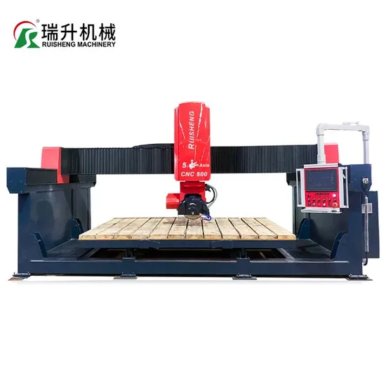 RCNC-500 with 4 axis interpolation and 1 axis electronic controlled, is a multifunctional CNC stone cutting and shaping machine built with the needs of workshops in mind, combining simplicity with maximum versatility for a minimum investment budget. It is popularly used for cutting slabs and blocks of both natural and synthetic stone, and ceramic.