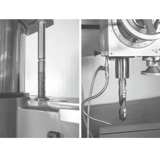 2. The headstock radial arm and column are clamped by manual clamping mechanisms.
