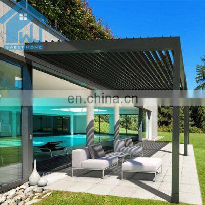 Product NameModern design bioclimatic motorized aluminium louvered pergola Materials Details1,Post: aluminum alloy 6063 T5 2,Blades : aluminum alloy 6005 T5 3,Beams: aluminum alloy 6063 T5 4,Gutter :100x100x2mm colors can be customizedControl wayMotorized/ManualFunctionWaterproof ,sunshade,windproof ,snowproof, house space extendingApplicationVilla,balcony ,garden ,backyard ,roof ,restaurant,decking ,swimming pool and so onWind Resistant180-220 KM/HSnow Loading60-100cmSizePopular standard size:3x3x2.5、4x3x2.5、5x3x2.5、6x3x2.5 or can be customizedOther related materialsSide screen/curtains, side shutter ,LED lights,heater ,fans,glass doors,outdoor furnitureInstallationWe will provide very detailed drawing and video for the installationOthers1.MOQ:1 set, we welcome small order 2.Production: we are factory , we can provide 10-15days fast production time 3.Warrenty:10 years 4.Color:White, Grey, Black, or customized colors availableFAQQ1. Is this aluminium louvered pergola easy to install?A: We have the assembly manual instruction specifically made according to your project site. It's a DIY product designed to be easily assembled and we can provide installation video.Q2. How long is your products' warranty?A: All our products have 10 years warranty.Q3:How to guarantee the quality of the products?A:We have our own QC team to control the products quality for all our clients'orders before loading.Q4. How can i get a price of needed aluminium louvered pergola?A: Please give the exactly size and quantity of your required aluminium louvered pergola. We can give you a detail quotation and free design solution based on your requirements.Q5.I am a small wholesaler, do you accept small order?A: It's no problem is you are a small wholesaler, we would like to grow up with you together and our MOQ is 1 set.Q6. Is my first time to export from China, what if i have no experience?A: Don t worry, we have very professional sale will guide for and we can provide one stop solution including deliver the door to your home address with customs.Q7. What kind of payment terms would you accept?A: We usually accept T/T, L/C, Western Union, etc. If you prefer other payments terms, please feel free to discuss with us.Q8. What if i meet the problem after installing and using this aluminium louvered pergola?A: As our principle is our business had been built on hoes & backed by customer service.we are verified supplier in Alibaba. com and our can provide 10 years warranty, so if you meet any problem for using thisaluminium louvered pergola,welcome to contact.