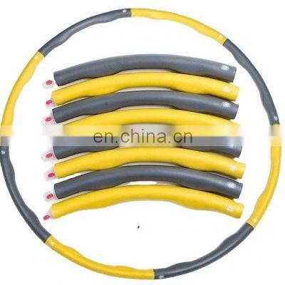 New products 2021 hot sale Adjustable Detachable Fitness Hula Ring Circle For Adult And Kids 8 Section Weighted Exercise HoopProduct name Hula RingMaterial Foam rubber Weight 880g-1100 gTypesSegments 6:diameter 70cm,880gSegments 7:diameter 84cm,960gSegments 8:diameter 96cm,1100gPacking 40*19.5*7.5cm per unit, 20 units per carton, carton size:85*42*42cm, the CBM is 0.149m3,Segments 8 type is 23kg per cartonNote All dimensions are measured manually with deviation (ranged)at 1-3mm. If by any chance they are not, we are sorry for that.metal hulahoops/laser hulahoop/led glow hulahoops/led strip hulahoop/light up hulaoop/circleglide exerciseFAQ 1.What is your MOQ?Our MOQ is 1 piece, welcome inquiry. 2.How about your shipping? We can ship according to your requirements, low quantity can be send by express, air, large quantity can be by sea or train. It is up to buyer's requirement, we can discuss for the detail. 3.Can I use my owen logo or use our desin?Yes, but this need to be discuss further, we can print your log if you are middle man.4.What is your payment terms? We accept all the payment terms that can asure buyers' and sellers' satification.Different payment against different clients. If you have any other inquiries, welcome to contact by online trade manger or other ways .