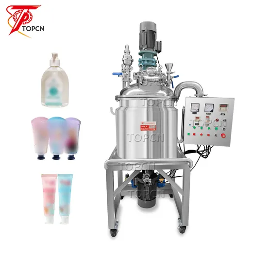 It is mainly suitable for preparation of liquid detergents (such as cleanser essence, shampoo and shower cream etc.). Integrating blending, dispersing, heating and cooling etc. functions, the machine is an ideal device for liquid preparation in various factories. It mainly adopt SUS304, the part of contacting material are SS316, the heating device can be choosed in steam or electric , homogenizer make the cosmetic material to be sheared by high speed, and react with each other.