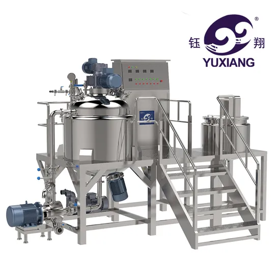 This machine is vacuum emulsifying mixer.It is a processing equipment with mixing, homogenizing, emulsifying,heating fuction, etc.The machine is widely used to produce cosmetic cream,lotion,as well as food cream,paste ,etc.It is the first choice of cosmetic factory which manufacture high quality products. The machine adopts the component of international famous brands, which ensure durable quality and operational stability of the machine. According to the feedback from our customers, this design style provides great satisfaction performance to them.This device is mainly composed of Water phase pot, Oil phase pot, Emulsifying pot, Vacuum system, Lifting system(optional), Electric control system, Operation platform etc.