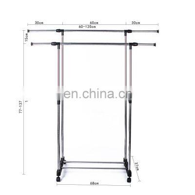 Product nameDouble pole clothes hanger Material Stainless steel Length68cm*37cm*138cm Color Black Feature Slap-up Gross weight 1.8kg MOQ 10PCS OEM/ODM Customization Service Provided Q1: Wonder if you accept small orders?A1: Do not worry. Feel free to contact us .in order to get more orders and give our clients more convener ,we accept small order. Q2: Can you send products to my country? A2: Sure, we can. If you do not have your own ship forwarder, we can help you. Q3: Can you do OEM for me?A3: We accept all OEM orders,just contact us and give me your design.we will offer you a reasonable price and make samples for you ASAP. Q4: What's your payment terms ?A4: By T/T,LC AT SIGHT,30% deposit in advance, balance 70% before shipment. Q5: How long is your production lead time?A5:It depends on product and order qty. Normally, it takes us 15 days for an order with MOQ qty. Q6: When can I get the quotation ?A6: We usually quote you within 24 hours after we get your inquiry. If you are very urgent to get the quotation.Please call us or tell us in your mail, so that we could regard your inquiry priority.