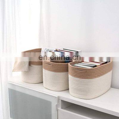 Related ProductProduct Description1. Modern design and style to suit your home. Make your plant look more beautiful and organize your laundry and clutter by putting in this beautiful handmade Basket.2. Handcrafted by skilled artisans who have been perfecting their craft in the hand loom process for generation, these baskets for storage is of the highest quality, brings a stylish look and keep you up with the latest trends of home decor. These Storage Bins with Lid are the perfect addition to any room in your home.3. Our natural handcrafted Storage Organizer Baskets are a perfect way to merge functionality and stylish charm. This jute baskets with cover can also be used for storing and organizing clothes, wardrobe, toys, pet possessions, crafts, baby clothing, diapers, and just about everything else. Use it as storage baskets for wardrobe, laundry basket, clothes storage bin, toy storage bin, storage baskets for clothes, baskets for storage in kitchen pantry or bedroom.4. This Storage Basket is the perfect embodiment of urban need and modern design aesthetics. Helps eliminate clutter while making it easier to find what you need. Efficiently designed with ample storage space, this basket can be used to store extra blanket, cushions or can be purposed as a laundry bag or toy basket also. The lid of this hamper conceals smelly clothes while also Keeping your Dirty Laundry Out of Sight.Product NameChildren Storage BasketsTypeStorage basket MaterialCotton ropeStyleEurope and America ShapeReactangularSize38 X 25.4 X 23 cmColorwhite+grey, White+brown, White+light brown, Grey+Light BrownWeight0.65 KgOEMAcceptedProduct ShowsCompany ProfileOur ServiceExpress Delivery by FedEx, DHL, TNT, UPS, EMS Shipment Weight1 - 45 kg45 - 200 kgor MoreMode of ShipmentBy CourierBy Courier / AirBy Air / SeaLead Time5 - 7 days5 - 7 days5 - 7 days30 days to Europe / USADoor to door delivery carrier includes: DHL, Fedex, UPS, TNT, EMS etc.A full range of sea and air logistics to provide you with the most convenientlogistics experience, rapid response to save your time.Payment TermsTrade AssurancePayPal / Secured PaymentWestern UnionBank TransferFor any amount< $ 5000For any amountFor any amountFrequently Asked QuestionsQ: Why choose us?• Lowest factory price with good quality• Low Minimum Order Quantity • Free sample to check quality• We also accept trade assurance order to protect buyerQ: What kind of method do you use to put customized logo?• Silk screen printing • Laser engraving • Etching• Stamping• Embossing / Debossing and any other mode you wantQ: How to save sample cost?• Stocked item, no MOQ. Small batch production also welcomedQ: How to get a sample?• We can supply free sample of standard product, you just need to bear the shipping cost.• For customized sample, please contact us for sample cost.Q: What is sample time and production?• Existing sample: 2-3 days• Customized sample: 7-10 days• Mass Production Time: 25-30 daysQ: What is your shipment term?• We can send your shipment by Sea / Air / Door to door courier, depends on the shipment size we can give you suggestions.• As we are sending shipments frequently by courier , we are getting good discount from the carrier, and we will transfer the benefit to you.Q: What is your term of payment?• We are quite flexible about payment, we accept T/T, PayPal, Western Union, Trade Assurance, etc.Contact DetailsPhone Number0086-512-68080479 (Ext No.602)Email Idsales@esunrix.comWhatsApp+86 13606131434Skypesunrise-sales3WeChatesunrix