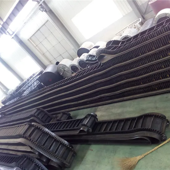corrugated rubber conveyor belt Sidewall Belts allow end users to carry bulk materials at high inclines and angles up to 90 degrees. This allows material to be carried where space requirements are critical, and increases overall belt efficiency and throughput.