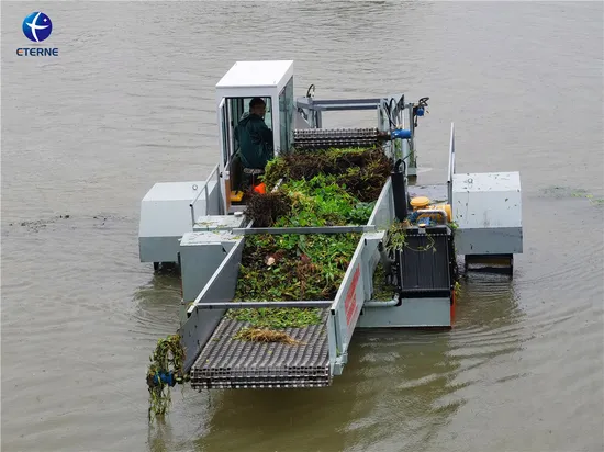 Aquatic weed harvester Dredger/Trash Skimmer can be used for collecting aquatic weed ,floating trash and doing salvage job in reservoirs,rivers,lakes and coastal water,conveying ,draining ,stocking and transporting movement can be completed by one man via controlling the buttons and switches on the control desk.