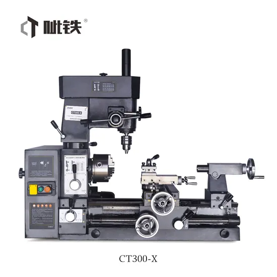 Turning, drilling, and milling three-in-one machine, the drilling and milling head can be raised and lowered, and can be rotated 360°