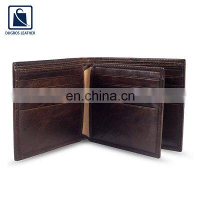 Low MOQ Brown Shiny Leather Men Wallets with Card Holder Slot