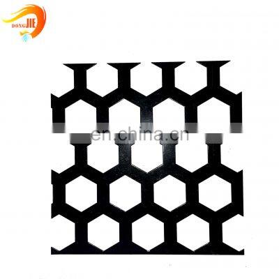Factory Manufacturer Aluminium Decorative Hexagon Hole Perforated MetalProduct DescriptionProduct NamePerforated Mesh Metal SheetsMaterialAluminum, stainless sheet, black steel, galvanized steel, copper/brass, etc.Hole ShapeRound, Square, Hexagonal, Cross, Triangular, Oblong, etc.Arrangement of HolesStraight; Side Stagger; End StaggerThickness≦ Hole Diameters (to make sure perfect holes)PitchCustomized by buyerSurface Treatment Powder coating, PVDF Coating, Galvanization, Anodizing, etc.Applications- Facade cladding- Curtain Wall- Architectural decoration- Ceiling- Noise Barriers- Wind dust Fence- Walkways and staircases- Conveyor Belt- Chair/Desk- Filter Screens- Window- Ramps- Gantries- Filtration- Balustrades- Protecting net for carPacking Methods- Packing in rolls with carton. - Packing in pieces with wooden/steel pallet.Quality ControlISO Certificate; SGS CertificateAfter-sale ServiceProduct test report, online follow up.Why Choose Our Products?1. Light weight but good strength is ideal for decoration. 2. Simple design of the structure makes the finished goods elegant. 3. It's easy to install and durability but low maintenance cost. 4. Bright color, high temperature resistance, corrosion resistance and enviornment friendly.ApplicationsYou can find the perforated metal products working everywhere when you open your eyes.At home: lampshade, floor drain, ventilation screen, air container inside, Kitchen ventilator etc. On the way: building facade, bus seat, machine cover, etc.The extensive applications helps the perforated metal mesh sold very well and all over the world.About CompanyDONGJIE WIRE MESH PRODUCTS CO., LTDWe are a secialized manufacturer for the development, design and production of expanded metal mesh, perforated metal mesh,decorative wire mesh, filter end caps and stamping parts for decades. Dongjie has adopted ISO9001:2008 Quality System Certificate,SGS Quality System Certificate and modern management system.Details ShowProduction LineAnping Dongjie Wire Mesh Products Factory is founded in 1996 with over 5000sqm areas. We have more than 100 professional workers and 4 professional workshops: expanded metal mesh workshop, perforated workshop, stamping wire mesh products workshop ,molds made and deep-processing workshop.Packing & DeliveryQuantity(sqm)Delivery TimeShipping WayShipping Time1-3003-5 days after received your paymentDoor to door by express5-10 days300-5005-10 days after received your paymentDoor to door by express5-10 days500-100010-15 days after received your paymentShipping by airShipping by sea20-30 daysFeedbackAs always stuck into “Quality Proves Strength, Details Reach to Success”, Dongjie has achieved highly acclaim in the old and new customers.FAQQ1: Are you a manufacturer or a trader? A1: We are a professional manufacturer of perforated metal wire mesh products. We have been specialized in wire mesh for decades and accumulated rich experiences in this field. Q2: How to make an inquiry of Perforated Metal Mesh?A2: You need to provide material, hole size, pitches and the quantity to ask an offer. You can also indicate if you have any special requirement.Q3: Could you provide free sample? A3: Yes, we can provide free sample in half A4 size together with our catalogue. But the courier charge will on your side. We'll send back the courier charge if you make an order.Q4: How is your Payment Term? A4: Generally, our payment term is T/T 30% in advance and the balance 70% against the copy of B/L. Other payment terms we can also discuss.Q5: How is your delivery time? A5: ①We always prepare enough stock material for your urgent requirement, the delivery time is 7 days for all the stock material.② According to quantity and technology you required for the non-stock items to offer you the exact delivery time and producing schedule.