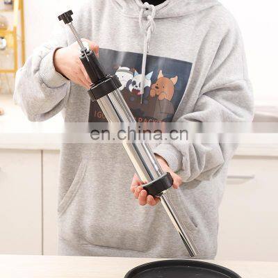 Related ProductProduct DescriptionSausage Nozzles: Whether you're using collagen or natural casings, these three nozzles can handle it all. Match the correct shell size to the correct nozzle in our instruction manual included with the handheld machine. Quick Loops: This sausage maker is perfect for trying out multiple sausage recipes. You just have to churn a few kilos of each recipe and squeeze them into the casings. There is no need to bother with large equipment and cumbersome cleaning. Afterwards, everything can fit in a practical bag and be stored in any drawer.Quick Cleanup: This sausage maker cleans easily in the sink with soap and water. A large and small brush is included to quickly remove small areas. The spouts and caps can be washed in the dishwasher.Durable: Constructed of stainless steel and aluminum, this sausage maker is designed to work effortlessly through endless batches of sausages. No cheap plastic to break in the middle of the job.Product DetailsProduct nameSausage StufferColor Silver + blackMaterialStainless Steel 304 + PP handleSize21 x 34.5 x 5.1 cmWeight 1 kgPacking Size 36.2 x 19.7 x 7.2 cmPacking Weight1.1 kgOEMAcceptedProduct ShowsCompany ProfileOur ServiceExpress Delivery by FedEx, DHL, TNT, UPS, EMS Shipment Weight1 - 45 kg45 - 200 kgor MoreMode of ShipmentBy CourierBy Courier / AirBy Air / SeaLead Time5 - 7 days5 - 7 days5 - 7 days30 days to Europe / USADoor to door delivery carrier includes: DHL, Fedex, UPS, TNT, EMS etc.A full range of sea and air logistics to provide you with the most convenientlogistics experience, rapid response to save your time.Payment TermsTrade AssurancePayPal / Secured PaymentWestern UnionBank TransferFor any amount< $ 5000For any amountFor any amountFrequently Asked QuestionsQ: Why choose us?• Lowest factory price with good quality• Low Minimum Order Quantity • Free sample to check quality• We also accept trade assurance order to protect buyerQ: What kind of method do you use to put customized logo?• Silk screen printing • Laser engraving • Etching• Stamping• Embossing / Debossing and any other mode you wantQ: How to save sample cost?• Stocked item, no MOQ. Small batch production also welcomedQ: How to get a sample?• We can supply free sample of standard product, you just need to bear the shipping cost.• For customized sample, please contact us for sample cost.Q: What is sample time and production?• Existing sample: 2-3 days• Customized sample: 7-10 days• Mass Production Time: 25-30 daysQ: What is your shipment term?• We can send your shipment by Sea / Air / Door to door courier, depends on the shipment size we can give you suggestions.• As we are sending shipments frequently by courier , we are getting good discount from the carrier, and we will transfer the benefit to you.Q: What is your term of payment?• We are quite flexible about payment, we accept T/T, PayPal, Western Union, Trade Assurance, etc.Contact DetailsPhone Number0086-512-68080479 (Ext No.602)Email IDsales@esunrix.comWhatsApp+86 13606131434Skypesunrise-sales3WeChatesunrix