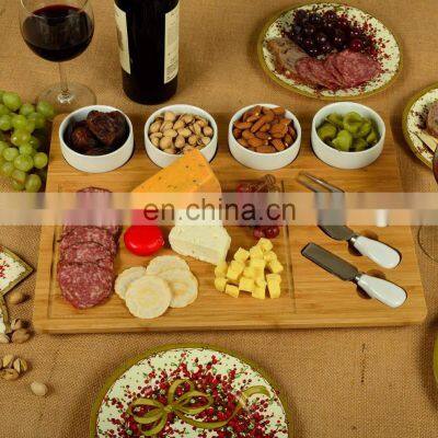 Products DescriptionName New Design High Quality With Cheese Knives Set Premium Bamboo Cheese BoardColorBambooMaterial100% Natural BambooSize43.2*33.5*5cmPackingBrown box and shrinkPortXiaMen,FuZhouPaymentL/C,T/T, trade assurance,Western UnionDescription1.Made of durable natural bamboo known to be environmentally friendly, stronger and more beautiful than regular wood.2.Ideal for serving breakfast, dinner, wine, or just anything else, or use for an elegant decoration display.3.Elegant sides with wide handles for easy grip. Surrounding tray lips prevent items from falling over.4.Hand wash with mild soap warm water, for extended life of tray use bamboo oil occasionally.Pelative ProductsFactory introductionProduct packagingFAQ