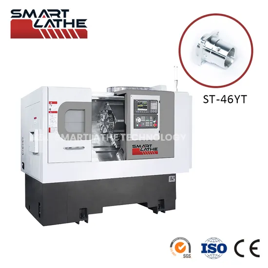ST-46YT is equipped with a CNC program-controlled hydraulic tailstock, a 12-station power turret, a power milling head that can be installed at the upper or bottom position of the Y-axis (turret), high rigidity cutting, suitable for long-axis turning, milling, Processing of complex multi-process products such as drilling and tapping.