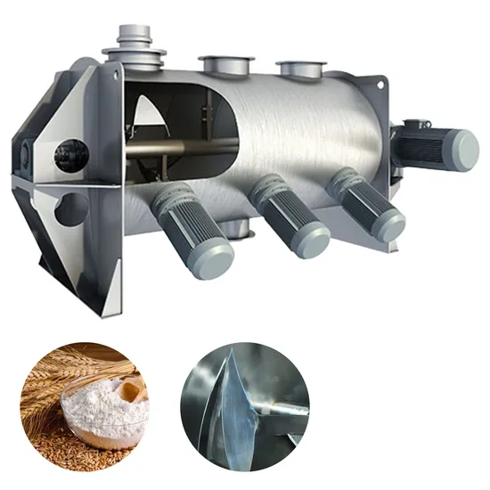 The Horizontal Ploughshare Mixer is a single-shaft forced mixing device equipped with multiple sets of ploughshare agitators. These agitators are staggered and continuously installed to avoid mixing dead spots. During operation, the staggered ploughs create continuous vortex centrifugal forces, leading to overlapping and scattering of the material flows, resulting in a boiling and convective circulation that rapidly mixes the materials.