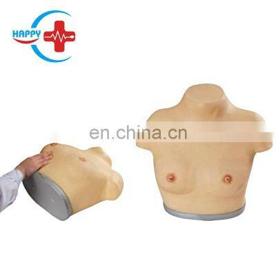 HC-S311 Advanced female breast examine & palpation teaching breast modelProduct DescriptionTechnic parameters Material: Premium PVC Description & main features:Typical signs of various common breast tumors are specifically designed for clinical diagnosis and self-examination of female breasts; different sections of the model provide different simulated signs. There are more than 10 different lesions that can fully meet the needs of teaching.The model provides the following lesions:Nodule: Hard texture, surface is not smooth, can be regarded as malignant tumor; texture is relatively soft, smooth surface, can be regarded as benign tumor. Lymphatic metastasis: The axillary and neck can reach the harder lymph nodes. Changes in the nipple: nipple depression; nipple rupture and bloody fluid spillage. Skin changes: skin depression; orange peel-like appearance; inflammatory breast cancer.Pictures for HC-S311 Advanced female breast examine & palpation teaching breast model View More>> Packaging & Shipping Company Information Clients and projects contact Our Services FAQ1. How to place order of HC-S311 Advanced female breast examine & palpation teaching breast model?A: Firstly we confirm product details and then send the Proforma Invoice, You make payment to us through Alibaba Trade Assurance or T/T, Western Union or MoneyGram, after we confirm your payment then ship the product to you once finished production. 2 HC-S311 Advanced female breast examine & palpation teaching breast model,What’s the minimum order quantity (MOQ)?A: For disposable material,We have our own MOQ,For our HC-S311 Advanced female breast examine & palpation teaching breast model our MOQ:1pc,3. What is your warranty?A: For most products the warranty is for 12 months, some products we provide 18 months warranty. For HC-S311 Advanced female breast examine & palpation teaching breast model, warranty is 12 months.4. What’s your delivery time?A: Generally it is 5 working days if goods in stock. within 10 working days if the goods need production, And also the delivery time depands on quantity. For HC-S311 Advanced female breast examine & palpation teaching breast model, the delivery time is 10 working days .5. How to ship the product?A: The shipping way normally depand on your quantity,total CBM and weight. We have our own shipping company to provide best shipping cost and efficient way.