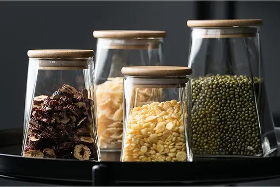 | Name | 350/500/750/950ml Borosilicate Glass Container, Square Shape Glass Food Storage Jar wirh Sealed Bamboo Lid |
