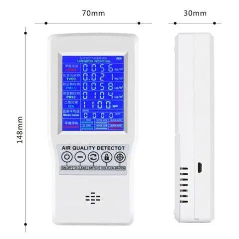 | Product name | Portable Air Quality Tester with CO2 VOC Formaldehyde Detector AQI PM2.5 & 4 More Knob Home Monitoring Desk Monitors |