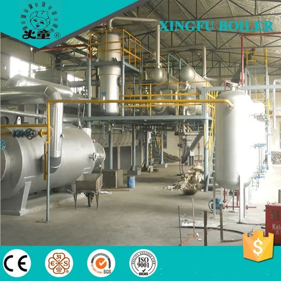 Technological Process Waste tyre and medical waste sent into fuel preheater by conveyor to melt. Process generated HCL specially. Melted fuel continuously sent into reactor, and finish pyrolysis under low pressured catalyst. After generated gas during pyrolysis separates in gas-liquid separator, liquify in condenser and get fuel oil. After fixed bed second catalyst and dewaxing , can get the fuel oil with high quality. Carbon residue after pyrolysis output continuously by cooling conveyor, and made to be carbon rod as fuel. Flammable gas goes into exhaust gas treatment tank to desulfur, then extracted by vacuum pump and enter into water sealed tank, sent to hot air stove to burn. Main Performance Parameter