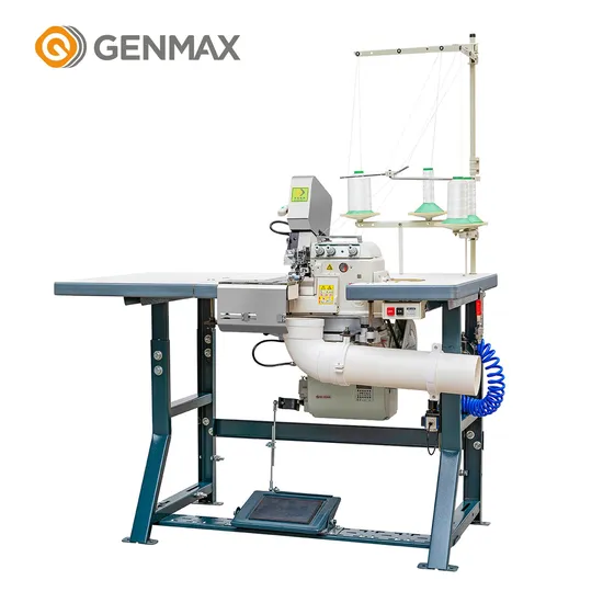 Double needle five thread synch ronous structure with upper feeding belt and lower feed dog system ensures precise feeding and perfect seam, and avoids material wrinkles during sewing process.