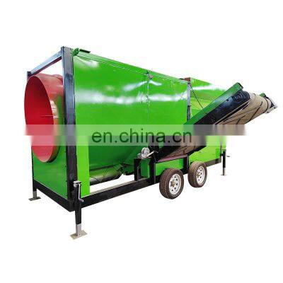 Mobile Trommel Screen Waste Rotary Drum Screen For Sand WashingWast Trommel ScreenThe mobile trommel screening machine is a screening equipment developed by our company for small and medium-sized and light materials such as compost, wood chips, cow dung, sand and gravel.It has the following characteristics:1. Smooth operation and low noise;2. Simple structure, maintenance Convenient;3. The screen holes are not easy to block;4. The screening efficiency is high;5. The screen has a long service life and is easy to replace.Structure and PrincipleThe mobile trommel screen is mainly composed of silo, screen drum, idler assembly, transmission part, discharge conveyor, brush, underframe, rear axle, traction, diesel generator, control cabinet, protective cover and other parts.The basic working principle of the trommel screen: the material is poured into the silo by the loader, and transported to the trommel screen by the conveyor on the silo, and then the motor reducer drives the idler to rotate the screen cylinder, and the material particles in the screen cylinder follow the screen. The drum rotates to a certain height, is thrown and dropped by gravity, and is filtered through the screen to form a screening. Finally, the screened materials are transported to different places by different conveyors.Product NameMobile Trommel ScreenProduct TypeMTS0818MTS1022MTS1230MTS1550Trommel Diameter0.8m1m1.2m1.5mTrommel Length1.8m2.2m3m5mTrommel Power2.2kw2.2kw4kw5.5kw*2