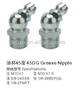 Our grease nipple materials are importing from Japan, the material DIN standard is 9SMnPb28, SAE standard is 12L14, and all our grease nipple are Nickel or Zinc galvanized. Currently we are supplying Grease Nipples to Mid-east, Africa, Europe and Latin America. Our Grease Nipples were developed as per Japanese and Germany products.