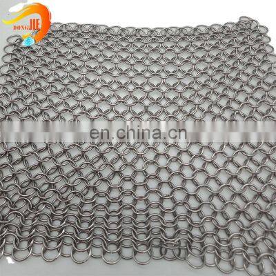 DECORATIVE CHAINMAIL CURTAIN/ RING MESH CURTAINView More, Click Here! Product Destription Ring mesh curtain, similar to chainmail curtain, consists of many metal circles link together. Compared with cloth curtain, the service time of metal material is longer but cost not too much. On the one hand, ring mesh curtain needs low maintenance, wipe it with a soft brush or a piece of cloth is enough, on the other hand, with flexible and durable structure, it is easy to install. And its metallic luster looks noble and elegant under lamplight and sunshine that can decorate your room, office or other places in dreamy colors, it is perfect for using as space divider, hanging on the ceiling wall or background decoration. With these unique metal properties, ring mesh curtain is used for hotels, office buildings, elevators, residences and other places. Application:1. Internal and external decoration: Partition wall, divider or backgrounds in habitation and public rooms etc.2. Garment decoration and viking helmets decoration.3. Pot and pan scrubber. Feature:1. Fireproof: Its meting point is far higher than that of cloth curtain.2. Stable: No shrinks or stretches when used.3. Mildew proof: It will be fine when used in humidity conditions.4. Light diffusing: Light filtration is controlled by curtain fullness and light conditions.5. No Maintenance: Stains can be washed off by mild soap water.6. Permanent: It will last longer than your life except you don’t like to hang it any more. Details:Material: Carbon steel, SS 304/316/316L, copper wire and steel alloy etc.Wire diameter: 0.6-3.0mm.Ring outside diameter: 5.3mm-35mm.Color:Natural, silver, bronze, purple bronze etc. ```````````````````````````````````````````````````````````````````````````````````````````````````````````````````````````````````````````Types of Ring Metal Ring Mesh Specification 12.0 stainless steel Material: stainless steel Ring Diameter: 12.00 mm Wire Gauge: 1.10 mm Weight: c. 3.06 kg/m² Tensile Strength: approx 53 kN/m Open Area: c. 63 % 12.0 bronze Material: bronze Ring Diameter: 12.00 mm Wire Gauge: 1.10 mm Weight: c. 3.45 kg/m² Tensile Strength: c. 33 kN/m Open Area: c. 63 % 7.0 stainless steel Material: stainless steel 1.4404 Ring Diameter: 7.00 mm Wire Gauge: 0.70 mm Weight: c. 2,2 kg/m² Tensile Strength: c. 23 kN/m Open Area: c. 60 % 7.0 bronze Material: bronze Ring Diameter: 7.00 mm Wire Gauge: 0.70 mm Weight: c. 2,49 kg/m² Tensile Strength: c.15 kN/m Open Area: c. 60 % ```````````````````````````````````````````````````````````````````````````````````````````````````````````````````Detail Images ````````````````````````````````````````````````````````````````````````````````````````````````````````````````````Application ·Internal and external decoration.·Divider or background decoration.·Helmets decoration.·Facades.·Exhibition design.·Staircase walls.·Mechanical filtration.·Fireplace screens.·Partition curtain wall. ````````````````````````````````````````````````````````````````````````````````````````````````````````````````````Packing and Delivery Our Company Anping Dongjie Wire Mesh Product Co., Ltd is a premier manufacturer and supplier of wire mesh products located in Anping Town, the famous Wire Mesh Land of China. We have engaged in expanded metal mesh, perforated metal mesh, decorative wire mesh and stamping parts for decades and have accumulated rich experiences in this field.