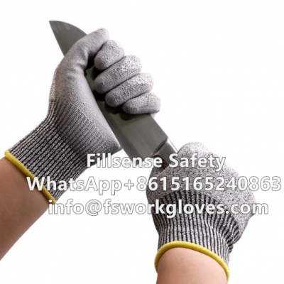 Anti Cut Level 5 UHMWPE/HPPE Liner PU Coated Cut Resistant Safety Hand Gloves