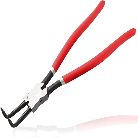 Product Description Application: Suitable for removing and installing retaining rings. Widely used in automotive, mowers, plumbing and pipes, bicycles, agricultural machinery, motorcycle.Design: Comfortable, non-slip PVC handles are easy to grip when installing and removing rings. Internal snap ring pliers with 90 degree folded corners and extra long handles for working into limited areas/narrow spaces.Material: Made of high quality carbon steel provides durability, finely polished and blacke finish to prevent rust.Anti-rust Oil: There may be some oil on the surface of the pliers, don't be worry because it is normal phenomenon. A little oil can make the tool work more smooth and protect the tool..
