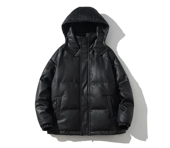 Winter Custom Fashion Men's Boys Quilting Hooded PU Puffy Down Polyester Padded Coat